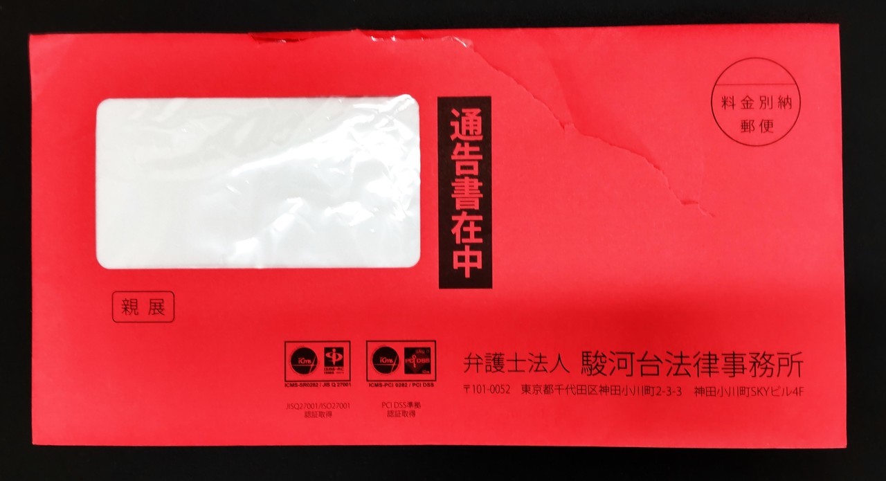 ■駿河台法律事務所から赤い封筒が届いたときの対処法